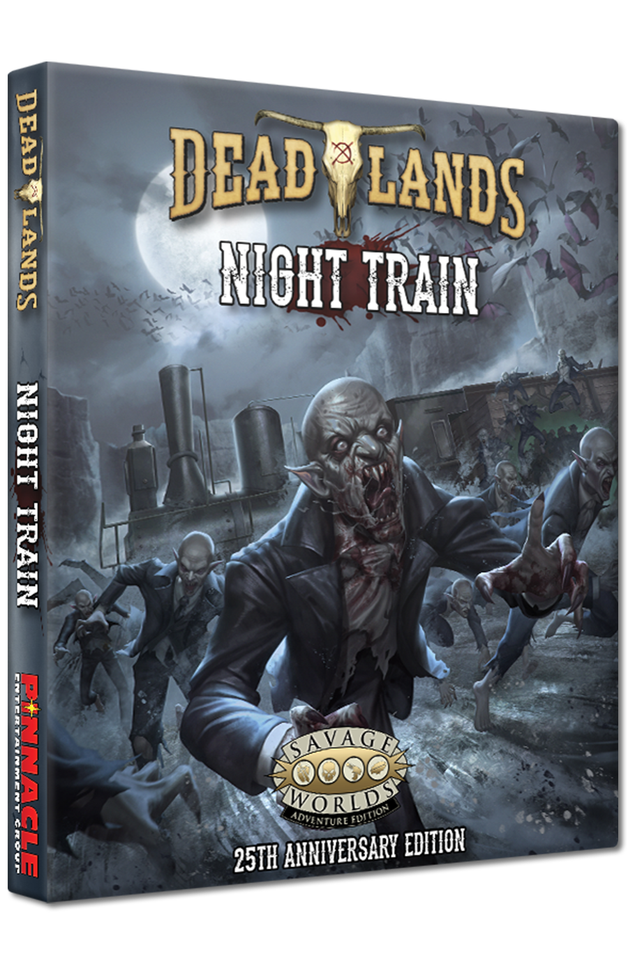 The Night Train lurks the tracks of the West, pulling in after dark to unleash its hellish cargo of starving, feral vampires on unsuspecting towns along the rails. For decades the Night Train has terrorized conventions and tabletops. What will you do when its deathly whistle blows? Can your posse survive the onslaught? Many others have tried—and failed!